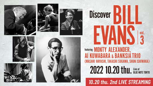 Discover "BILL EVANS" vol.3 featuring MONTY ALEXANDER, AI KUWABARA & BANKSIA TRIO (MASAKI HAYASHI, TAKASHI SUGAWA, SHUN ISHIWAKA)