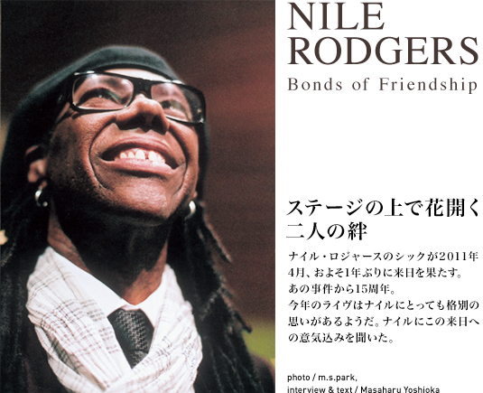 今年のシックは、いつもと違うナイル・ロジャース復活の大パーティーになるはずだ。会場でナイルたちのハート&ソウルをぜひ感じ取って欲しい。そして、ナイルとバーナードの熱い絆がステージの上で満開の桜を咲かせることになるだろう。