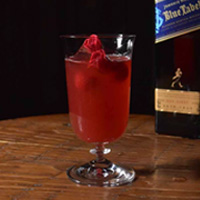 ジョニーウォーカー最上位「ブルーラベル」を惜しげもなく使用し、ベルモットの複雑な深みとラズベリーとバラの香りを纏わせたスペシャルカクテル。