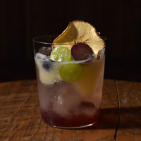 りんご、ハーブ、ジャスミンティーが一体となった華やかな香りをレモントニックの爽やかさでまとめ、沈めたブルーベリーと黒ブドウの豊かな果実味が徐々に混ざり複雑な味わいの変化を楽しめる一杯。