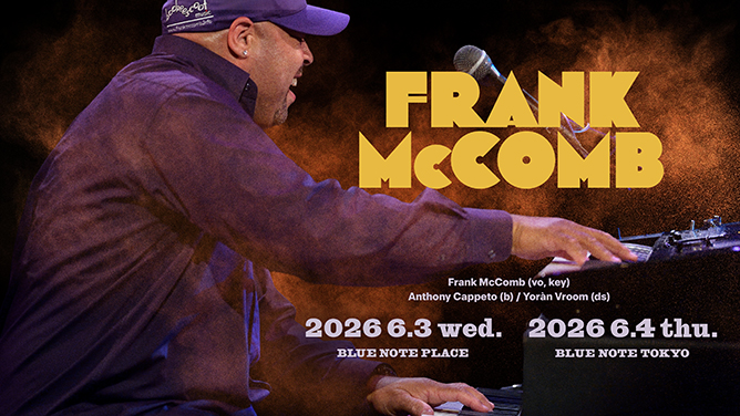 ジャズ、ソウル、R&Bを軽やかに横断し、洗練されたサウンドで魅了するヴォーカリスト、フランク・マッコムが2015年以来11年ぶりとなる単独公演を行う。プリンスやチャカ・カーンといった多数のトップ・アーティストと共演し、ブランフォード・マルサリスのプロジェクト“バックショット・ルフォンク”のメンバーとして活躍。高い評価を得て、2000年に『Love Stories』でソロ・デビューを果たした。感情豊かなヴォーカルと卓越したキーボード・プレイは、ダニー・ハサウェイ、スティーヴィー・ワンダー、ハービー・ハンコックの融合と讃えられ、オーセンティックでパッションあふれるライヴ・パフォーマンスで世界中のオーディエンスを熱狂させている。ブルーノート東京にはティル・ブレナー公演での客演以来の登場。熱いソウル・グルーヴとスピリットを東京で体験したい。