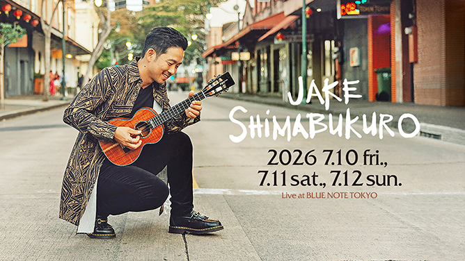 超絶技巧と幅広い音楽性でウクレレ=ハワイアンの概念を覆し、“ウクレレ界のジミ・ヘンドリックス”の異名を持つジェイク・シマブクロがブルーノート東京に初登場!ハワイ州ホノルル生まれ。4歳からウクレレを始め、90年代後半より音楽活動も開始。驚異的な演奏テクニックと巧みなアレンジで注目を浴び、自身の演奏活動に加えてテレビ番組や映画音楽も多数担当。ジャズ、ロック、ブルース、フォーク、クラシックとあらゆる音楽に挑み、さまざまなアーティストとコラボレーションを展開し、最新作『Calm Seas』ではハワイの自然の音を基に構成するなど、表現の幅を拡大し続けている。ホール・コンサートの機会が多い彼の希少なクラブ公演、ウクレレの無限大の魅力を至近距離で味わいたい。
