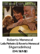 ●ギタリスト、作編曲家、プロデューサーのホベルト・メネスカルは、1937年10月25日、リオ・デ・ジャネイロ州とバイーア州に挟まれたエスピリート州のヴィトーリアで、エンジニアと建築士の家系に生まれた。両親の心配をよそに幼い頃から楽器に親しみ、ナイロン弦ギター、ピアノ、アコーディオンなどを演奏。次に、ハーモニーや作編曲のレッスンを受け、バーニー・ケッセルらアメリカのジャズ・ギタリストに傾倒。高校でカルロス・リラと出会うと、ふたりでギター教室をスタート。早々に駆けつけてきた生徒のひとりにはナラ・レオンが、そのレオンを中心にした輪に入ってきた若者には、やがてメネスカルと名コンビとなるロナルド・ボスコリらがいた。’57年半ば頃、そこに独創的スタイルを確立しつつあったジョアン・ジルベルトが現れる。清新なギターと歌に感動したメネスカルは、ジョアンの介添え役になって可能性を探り、自らのプレイ・スタイルを錬磨していった。さらに、アントニオ・カルロス・ジョビンやヴィニシウス・モラエスらの知遇も得て、ボサノヴァ創生の中心円で才能を発揮していく。’60年代に入ってボサノヴァ・ブームが起こると、エウミール・デオダートらの若手と活動し、’62年はN.Y.のカーネギー・ホールで行なわれたボサノヴァ・フェスティヴァルに参加。’63年にインストゥルメンタルによる『A Bossa Nova』を出した後、ギタリスト兼アレンジャーとしての活動にはずみをつけた。’70年代に入ると多彩な仕事ぶりが買われ、ポリグラム・レコードのスタッフに就任。’86年まで約15年間、プロデューサー、アート・ディレクターとして、ブラジル音楽の開発に専念した。84年にナラ・レオンとアルバム制作したのを機に演奏活動に戻ると、ふたりのデュオ・アルバム『Um Cantinho E Um Violao』がヒット。これでボサノヴァ・リヴァイヴァルの先頭に立ち、レイラ・ピニェイロら逸材のメジャー・デビューに手を貸すなど、頭脳派の粋人らしい仕事で第一線に返り咲いた。’90年代はワンダ・サーとのユニットを始め、ボサノヴァ誕生40年の節目になった’98年には日本向けの『エストラーダ・トキオ・リオ』をリリース。日本贔屓が高じて、禅をテーマにしたアルバムも作るなど話題に事欠かないできた。最近の話題作は、ワンダ・サーとの『スウィンゲイラ』(コロムビア・ミュージック・エンタテインメント)、レイラ・ピニェイロとの『Agarradinhos』(EMI/海外盤)、映画『ジス・イズ・ボサノヴァ』のサウンドトラックなど。ブルーノート東京に出演するのは、’07年7月以来2年10ヵ月ぶり。オフィシャル・サイトは「http://www.robertomenescal.com.br/index_html.htm」。