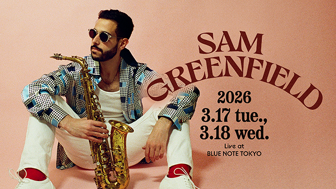 メロディアスでポップなファンキー・フュージョンが話題沸騰!コーリー・ウォン(ヴルフペック)のバンド・メンバーとして名を馳せるサックス奏者/マルチ・インストゥルメンタリスト、サム・グリーンフィールドが自身のプロジェクトを率いてブルーノート東京デビューを飾る。フィラデルフィアに生まれ、現在はNYを拠点に活動。エド・シーラン、マライア・キャリー、ジョン・レジェンド、デイヴ・コーズらさまざまなアーティストのレコーディングやツアーに起用され、2021年に初ソロ・アルバム『here’s some stuff』をリリース。ジャズの洗練とポップやファンクの熱気が混ざり合った躍動感あふれる独自のサウンドでオーディエンスを熱狂させている。J-フュージョンの影響も色濃いゴキゲンでパワフルなライヴを体験したい。