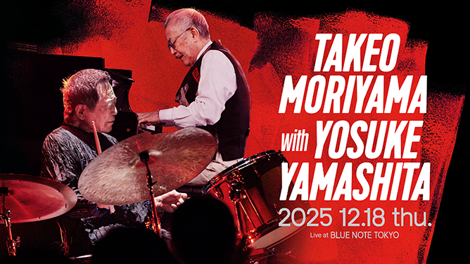 1960年代から第一線に立つジャパニーズ・ジャズ・ドラムの最高峰、森山威男。日本を代表するジャズ・ピアニストの山下洋輔。今年4月に開催された「JAZZ AUDITORIA 2025」で満場の観客を沸かせたふたりが今度はブルーノート東京のステージを飾る。フリー・フォームのエネルギッシュな演奏でジャズ界に衝撃を与えた“山下洋輔トリオ”。その一員として頭角を現した森山は、トリオ脱退後の1977年より自身のグループを結成。トリオ解散後も山下と共演を重ねるなど国内外で活躍し、シーンを牽引し続けている。前回の共演では、過激さと繊細さが同居するジャズの自由さを存分に発揮し、オーディエンスを魅了した彼ら。年内いっぱいで演奏活動をいったん休止することを発表した山下の休養直前となる貴重なライヴ、記憶に刻まれる一夜になることは間違いない。