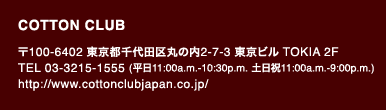 Official Website :http://www.bluenote.co.jp/jp/ Address :〒107-0062 東京都港区南青山 6-3-16 ライカビル Tel :03-5485-0088 [ご予約受付中] 11:00am-11:00pm(mon.-sat.) 11:00am-9:00pm(sun.&hol.) ▼配信停止、メールアドレス変更は下記URLからお願い申し上げます。 ○メールマガジンのみご登録のお客様はこちら https://reserve.bluenote.co.jp/bn-reserve/mailmg/BC0010_mail.jsp ○「インターネット予約システム」でご登録のお客様はこちら 「RESERVATION」へサイン・インした後、「お客様情報変更」画面よりメールマガジンの配信停止を選択して下さい。 https://reserve.bluenote.co.jp/bn-reserve/usermng/BC0120_upd.jsp BLUE NOTE TOKYO NEWS に掲載された記事は、いかなる形式であれ許可なく転載することは禁じられています。 発行元:(株)ブルーノートジャパンInc. 次回発行予定:2014 8.29 fri.