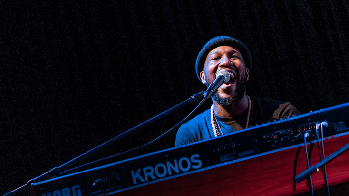 ステージにはハモンド・オルガン、ミニ・モーグ、フェンダー・ローズ等が設置されています。コリーは、まず無伴奏オルガン・プレイを始めました。故ジミー・スミス(20世紀ジャズ・オルガンの象徴)がテーマ・メロディに入る前に時たま行なっていたルバート(時に猛烈な速弾きパートを含む)風パートを経て、丸みのあるトーンを持つシャレイ・リードのベース(YouTubeで公開されている、ウェイン・クランツの「Signals」に合わせて弾く動画も必見です)、バック・ビートの利いたタロン・ロケットのドラムスが合流します。「Mary Don't You Weep」(アレサ・フランクリンやプリンスもとりあげたゴスペル・ソング)を思わせるナンバーをじっくり繰り広げたあと、休みなく4ビートのブルース・コードへ。ジャズ・オルガンへの愛がほとばしるようなアドリブが痛快です。