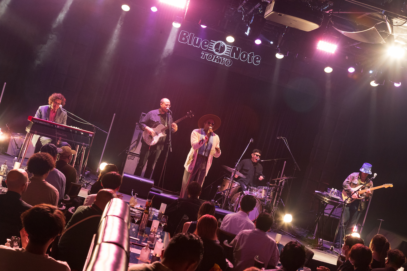 思い起こせば、新型コロナ・ウィルスに世界が覆われてしまう直前、一度は彼らの初来日は発表されていた(2020年4月の予定だった)。去年、雑誌『POPEYE』でアーロンに取材したときも心から残念そうな態度だったのを覚えている。太平洋を越えた日本からの、彼らのソウル・ミュージックへの熱いラブコールが確かに届いていたのだろう。もともとアメリカと日本で相思相愛だったところを、「Cruisin' To The Park」「Witchoo」のクラブヒット、アーロンのソロ・デビューなどの話題も後押しし、さらに遠距離恋愛的なじれったさも加わったわけだから、そんなショウが盛り上がらないわけはない。客電が落ち、メンバーが颯爽とステージに現れると、場内はあたたかい喝采に包まれた。