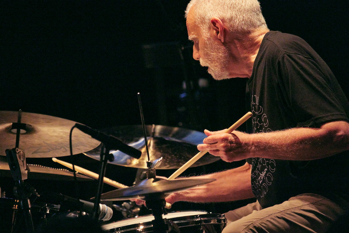 私が足を運んだ初日ファースト・セットは、トリオ・タペストリーがこれまで発表した3作品、つまり『Trio Tapestry』、『Garden of Expression』、『Our Daily Bread』(すべてECMレーベルからのリリース)からのナンバー+新曲というプログラムでした。音作りはこれまでロヴァーノが率いていたバンド、たとえばエスペランサ・スポルディングが在籍していた"アス・ファイヴ"や、ビ・バップへのオマージュを込めた"ジョー・ロヴァーノ・オクテット"などよりも抽象的ですが、これが実に面白いのです。楽曲のメロディは確かに存在するのですが、そこから先は、まさに無から有を生み出していくがごとし。3人が互いの音に耳を傾け、神経をとぎすませながら、おそらくその日・その時限りのアンサンブルを形成していくところに私は鳥肌もののスリルを覚えました。ロヴァーノのメリハリに富んだ吹奏(ペーター・ブロッツマンも演奏したクラリネット風の管楽器"タロガト"もプレイ)、そこに"同時に複数の音が出せる"ピアノの強みを最大限に生かしているといっていいであろうクリスペルの打鍵が絡み、カスタルディはまるで語っているかのようにドラムの各パーツを鳴らします。伝説の重鎮ポール・モチアンをほうふつとさせるキック(バスドラ)が、殊に見事でした。