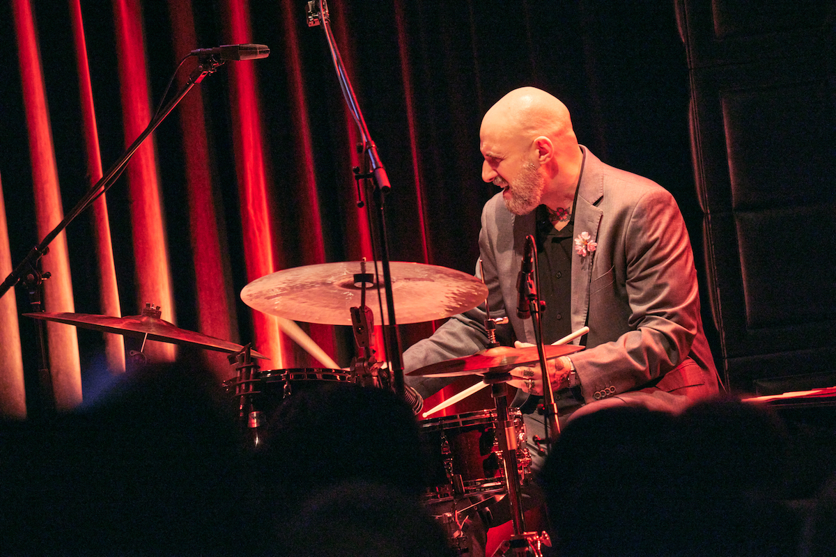 バンドスタンドには左からピアニストのトム・ジンク、ブライアン、ドラマーのチャールズ・ルッジェーロと、『ラファロ』と同じメンバーが位置します。トムはブライアンと30年以上にわたって共演を続け、シェリル・ベンティーン(マンハッタン・トランスファー)やアン・ウォルシュら歌手とのコラボレーションでも知られる奏者。初来日となるチャールズはヴィニー・ルッジェーロ(マンジョーネ・ブラザーズやスライド・ハンプトンのバンドで活動)の愛息で、スティーヴ・ガッドの指導を受けたこともある中堅です。近年ではケニー・Gのアルバム『New Standards』にも参加していました。