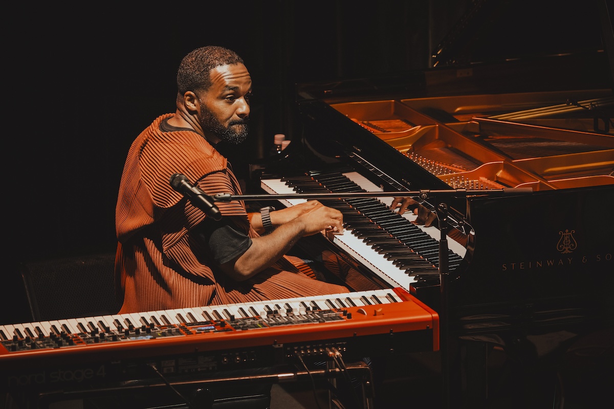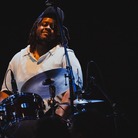 セシルの歌う楽曲は時代もジャンルも軽々と越えていきます。クルト・ヴァイルが作曲を担当した戯曲「三文オペラ(The Threepenny Opera)」からの「Barbara Song」では語りも交えつつシアトリカルなパフォーマンスを繰り広げ、ハウリン・ウルフやクリーム(エリック・クラプトンが在籍したグループ)のプレイでも知られるブルース「Spoonful」では、カイルの実にメロディアスなドラムスと対話するような歌唱を聴かせてくれました。そしてこの日、最も長尺の演唱となったのが、アビー・リンカーンの書いたスローバラード「Down Here Below」。柔らかで伸びのある声、澄み切ったロング・トーン、口とマイクの距離を細かく変えながらのコントロール、リズムの切れ味などなど、なぜセシルが現代ジャズ・ヴォーカリストの最高峰に数えられるのか、改めて実演で示した感じです。そういえば、今月上旬にブルーノート東京に登場したテリ・リン・キャリントンとクリスティ・ダシールの公演"WE INSIST 2025!"もアビー・リンカーンへの捧げものでした。月に2回も、偉大なるアビー(今年、没後15年にあたります)に思いを馳せる機会が訪れようとは、個人的には「ありがとうございました」という気分でいっぱいです。
