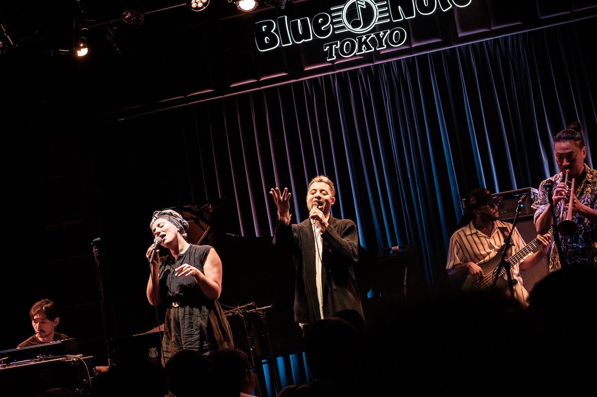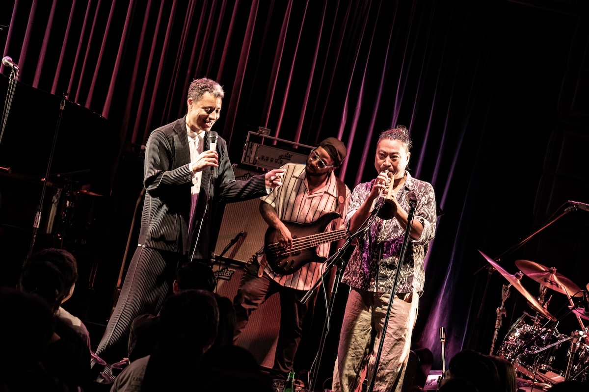 ホセとは約20年間にわたる盟友である黒田卓也は、「Rock With You」や「I Thought It Was You」で実に鮮やかなトランペット・プレイを披露。それぞれマイケル・ジャクソン、ハービー・ハンコックの古典的ナンバーですが、原曲への敬意をたっぷりこめながら、"いま"の意匠がかっこよく施されているのが、一連の"1978プロジェクト"の魅力です。黒田の吹奏は、アドリブはもちろん、ヴォーカルへの絡みやオブリガートも実にニュアンスに富んでいて、改めてホセとの相性の良さをライヴで知らしめてくれたという感じです。ソロ作品も好評のターリは、この日、ホセと実に息の合ったツイン・ヴォーカルを披露。東京で撮影されたMVも話題の「Tokyo Daydream」のライヴ・ヴァージョンには、場内がさらに沸きました。