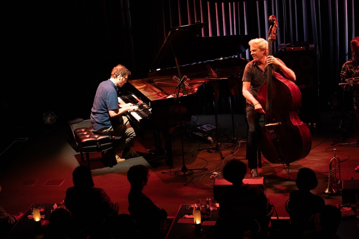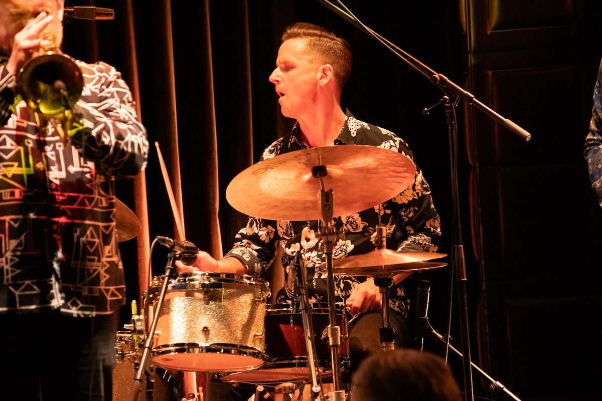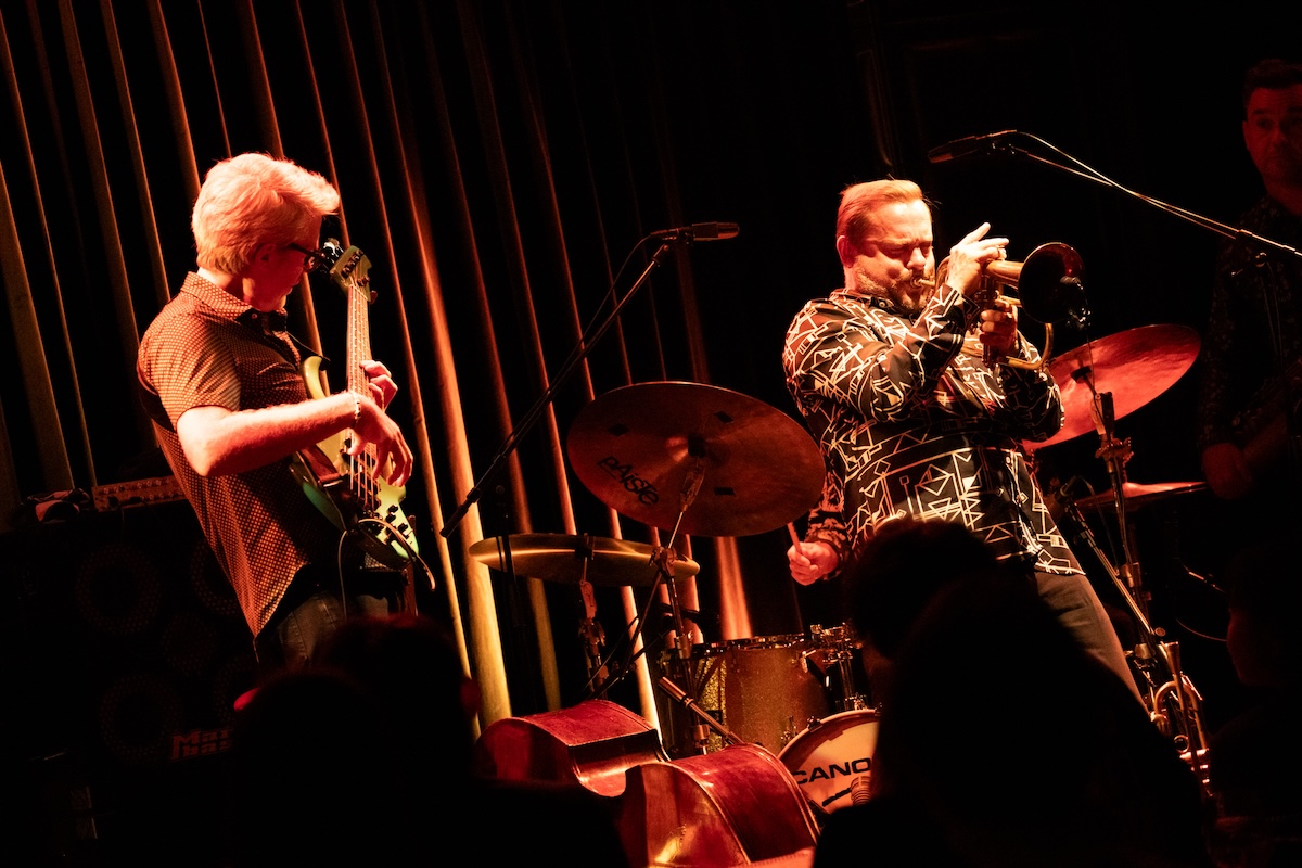 続いては父親のクリント・イーストウッドが監督した1975年公開の映画『The Eiger Sanction』から、タイトル曲を演奏。ここからエンディングまで、カイルは5弦エレクトリック・ベースをプレイしました。2023年に来日したことも記憶に新しい超大御所作曲家ジョン・ウィリアムス(かつてジョン・タウナー・ウィリアムスと名乗るジャズ・ピアニストでした)の書いた印象的なメロディが、モダン・ジャズとして生まれ変わってゆきます。ここでは、フリューゲルホーンに持ち替えたクエンティンが実に甘美なソロを聴かせました。
