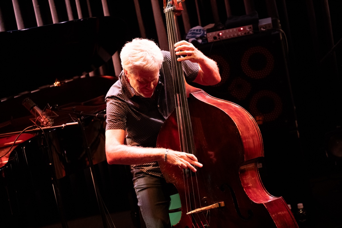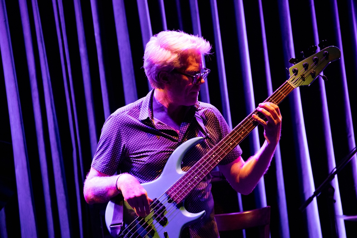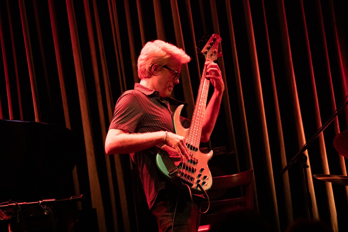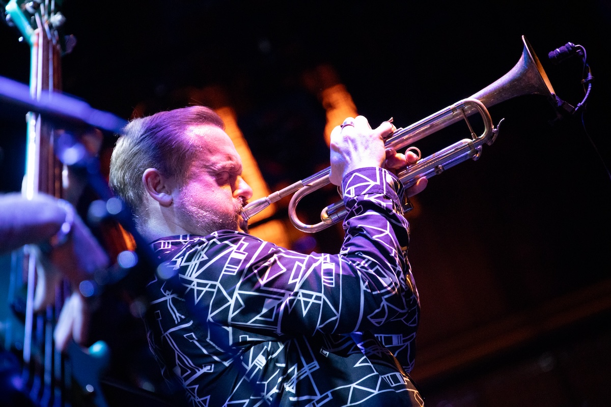 続いては父親のクリント・イーストウッドが監督した1975年公開の映画『The Eiger Sanction』から、タイトル曲を演奏。ここからエンディングまで、カイルは5弦エレクトリック・ベースをプレイしました。2023年に来日したことも記憶に新しい超大御所作曲家ジョン・ウィリアムス(かつてジョン・タウナー・ウィリアムスと名乗るジャズ・ピアニストでした)の書いた印象的なメロディが、モダン・ジャズとして生まれ変わってゆきます。ここでは、フリューゲルホーンに持ち替えたクエンティンが実に甘美なソロを聴かせました。