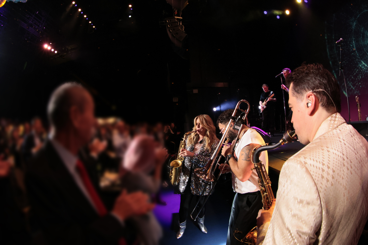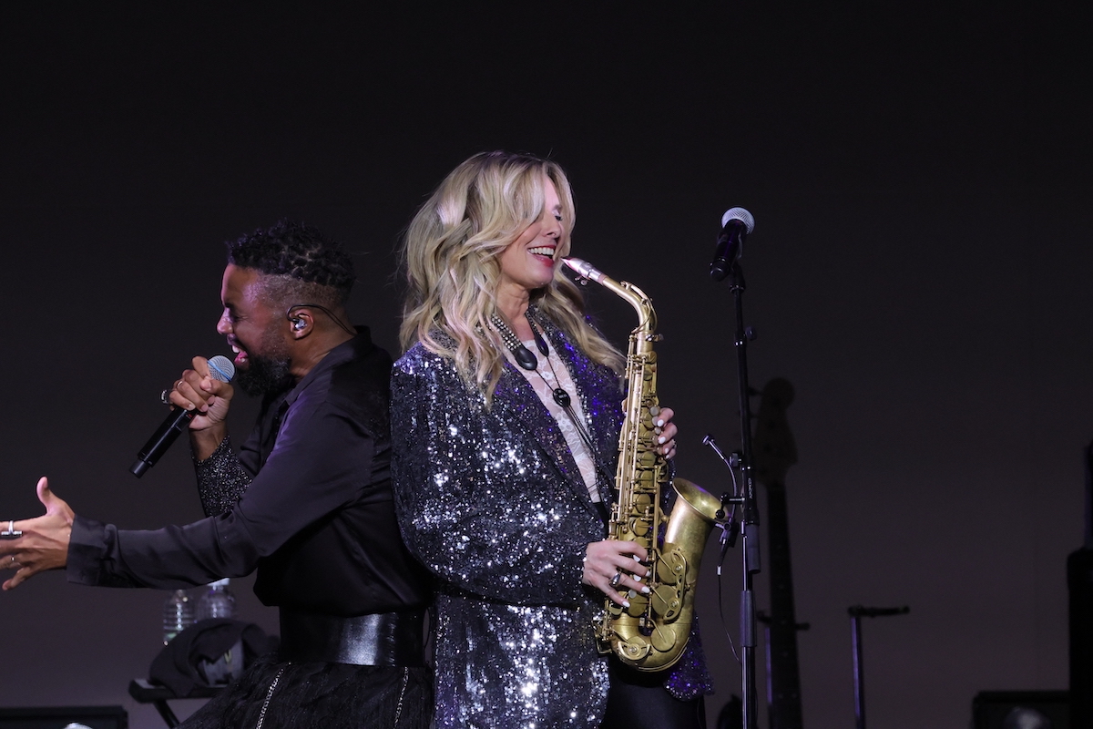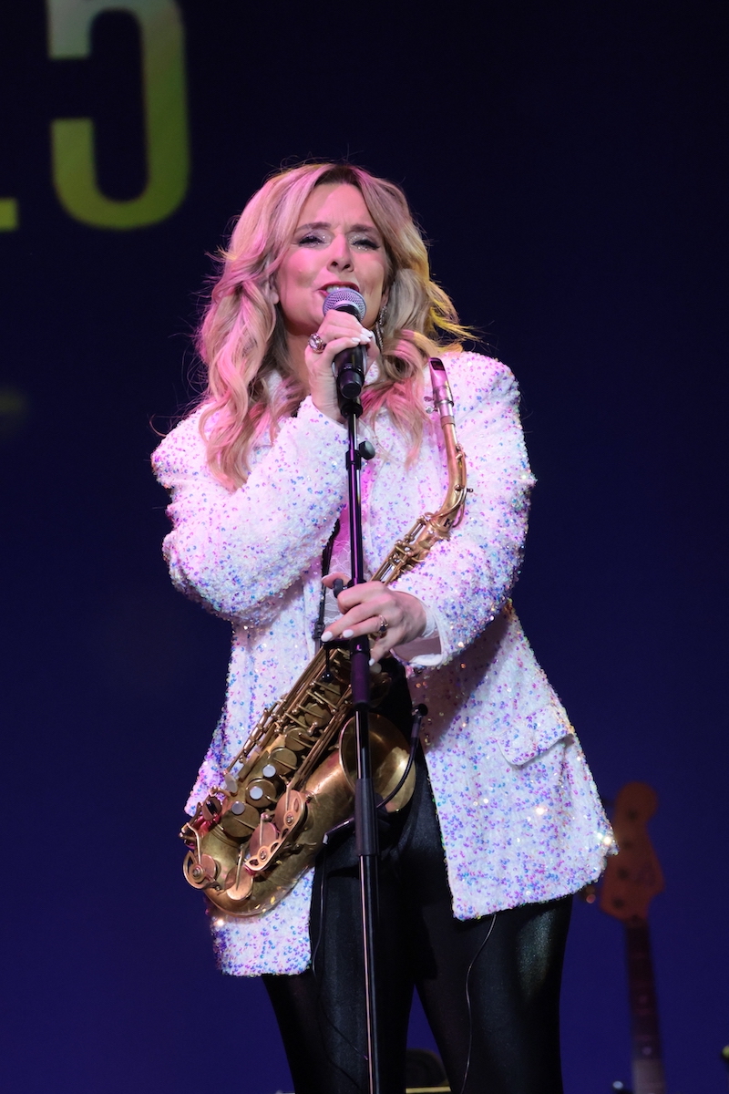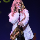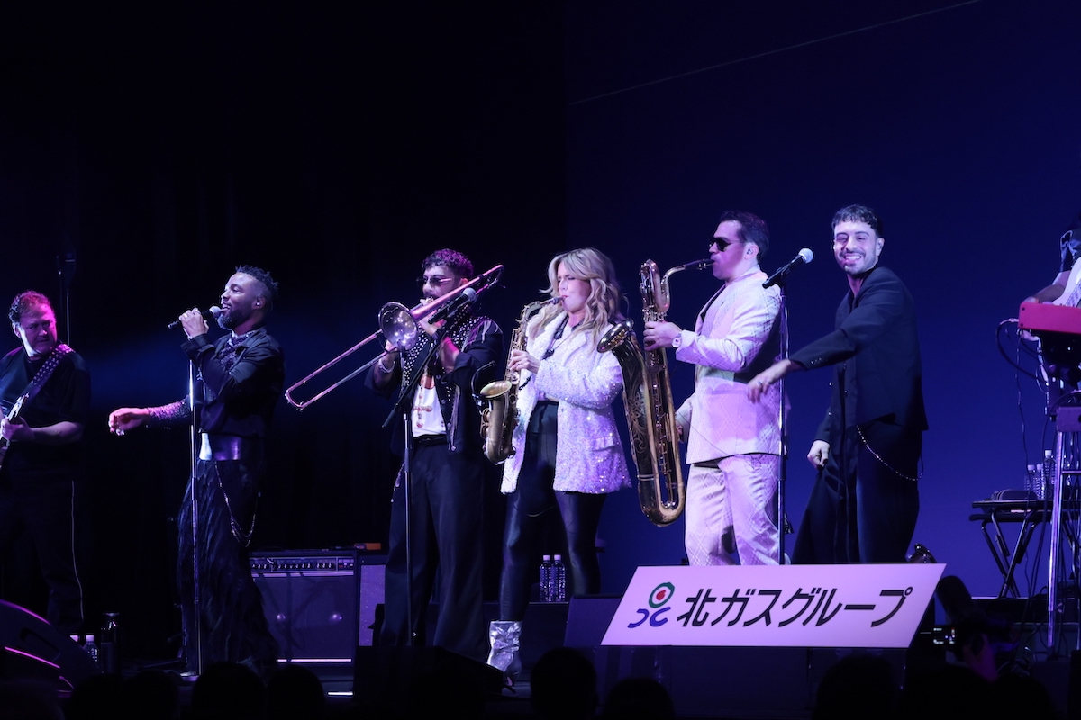 バンド・メンバーが登場して演奏を始めた後、イヴァン・ペロティのMCを受けて、万雷の拍手の中、キャンディが登場します。札幌にやってくるのは2014年以来だそうです。オープニングは代表曲の「SAX A GO GO」、サウンドは重量感倍増というしかありません。昨年と同じくサックスのマーク・マンジャンとトロンボーンのエフェ・アルデムがホーン・セクションを務めているのですが、昨年の公演ではテナー・サックスを吹いていたマークは今回、バリトン・サックスを多用します。バリトンとトロンボーンが支えるボトムと、トップを担うキャンディのアルト・サックスが織りなすアンサンブルが抜群です。