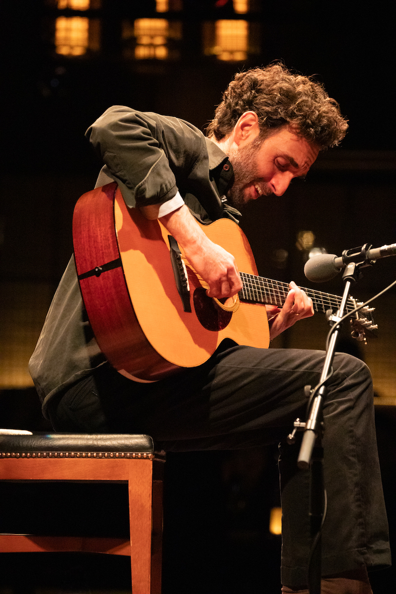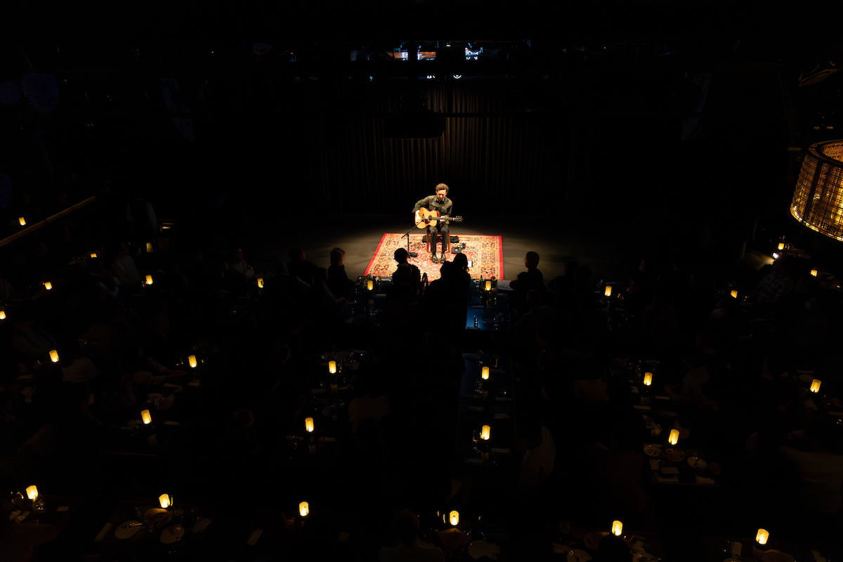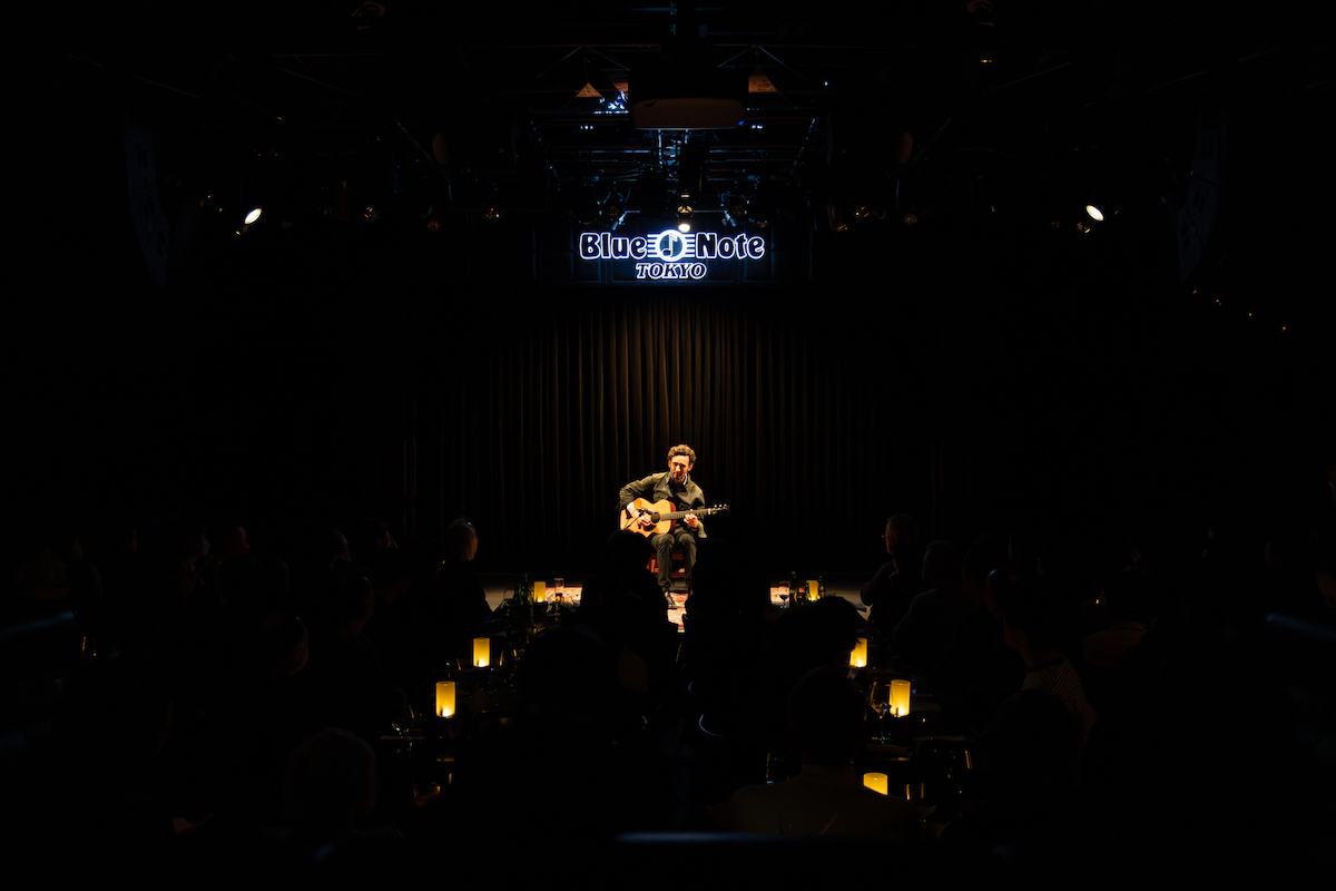 エレクトリック・ギターの達人としても知られるジュリアンですが、今回はアルバム『World's Fair』同様、1939年製の名器"マーティン000-18"の美しい音色をたっぷり聴かせるステージです。メロディ、コード、リズム、オブリガートを織り交ぜ、時に鮮やかなストローク、時にハーモニクスを挿入しながら繰り広げられる演奏の数々は、まさに"ギターは1本のオーケストラ"という言葉を地で行くもの。音響はジュリアンとの名コンビを謳われるマーク・グッデルが担当し、鬼才ギタリストのニュアンスに富んだトーンを絶妙なマイキングで見事に拾って、場内に豊かな音世界を響かせます。リサイタルのような品格と、ジュリアンのキャラクターなのでしょうか、気さくな雰囲気が一体となって、なんとも親密感のある空間がブルーノート東京に生まれていました。