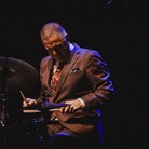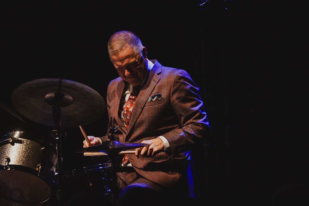 今回の日本公演のために、トリオは約50曲のレパートリーを用意してきました。何がプレイされるかは、その日その時の音楽家のヴァイブレーションで決まるのではと思いますが、初日ファースト・セットのステージは、ミュージカル「My Fair Lady」からの「I've Grown Accustomed to Her Face」で始まりました。過去オスカー・ピーターソン、マッコイ・タイナー、ビリー・テイラー、アンドレ・プレヴィンなど幾多のピアニストがとりあげてきたラヴソングです。スロー・テンポで演奏されるのが定石のところ、ジョーのアプローチはサンバ風になったり、16ビート風になったりと実に多彩で細やか、しかも滑らかに変化していきます。そしてブラッシュからスティックに持ち替えるやいなや、エメットや中村と共に猛烈にスウィングするパートへと移行。単に4ビートでノリノリに演奏するだけではなく、途中、1950年代のアーマッド・ジャマル・トリオを彷彿とさせる細かな"キメ"も挿入しながら、この歴史的なミュージカル・ナンバーを再生していくのです。続く「Lion Song」はエメットの自作で、ストライド奏法的なアプローチも盛り込んだ、"ジャズ100年の歴史を奏でるピアニスト"と呼ばれる彼の真骨頂的ナンバー。その次には、キューバの作曲家エルネスト・レクオーナの「La Comparsa」、ジュディ・ガーランドの歌唱で広まった「The Trolley Song」が続きます。どちらも近年のジャズ界では顧みられていない楽曲かもしれませんが、こうした曲を粋なアレンジで、今の音楽として届けてくれるのもエメット・コーエン・トリオの素敵なところです。