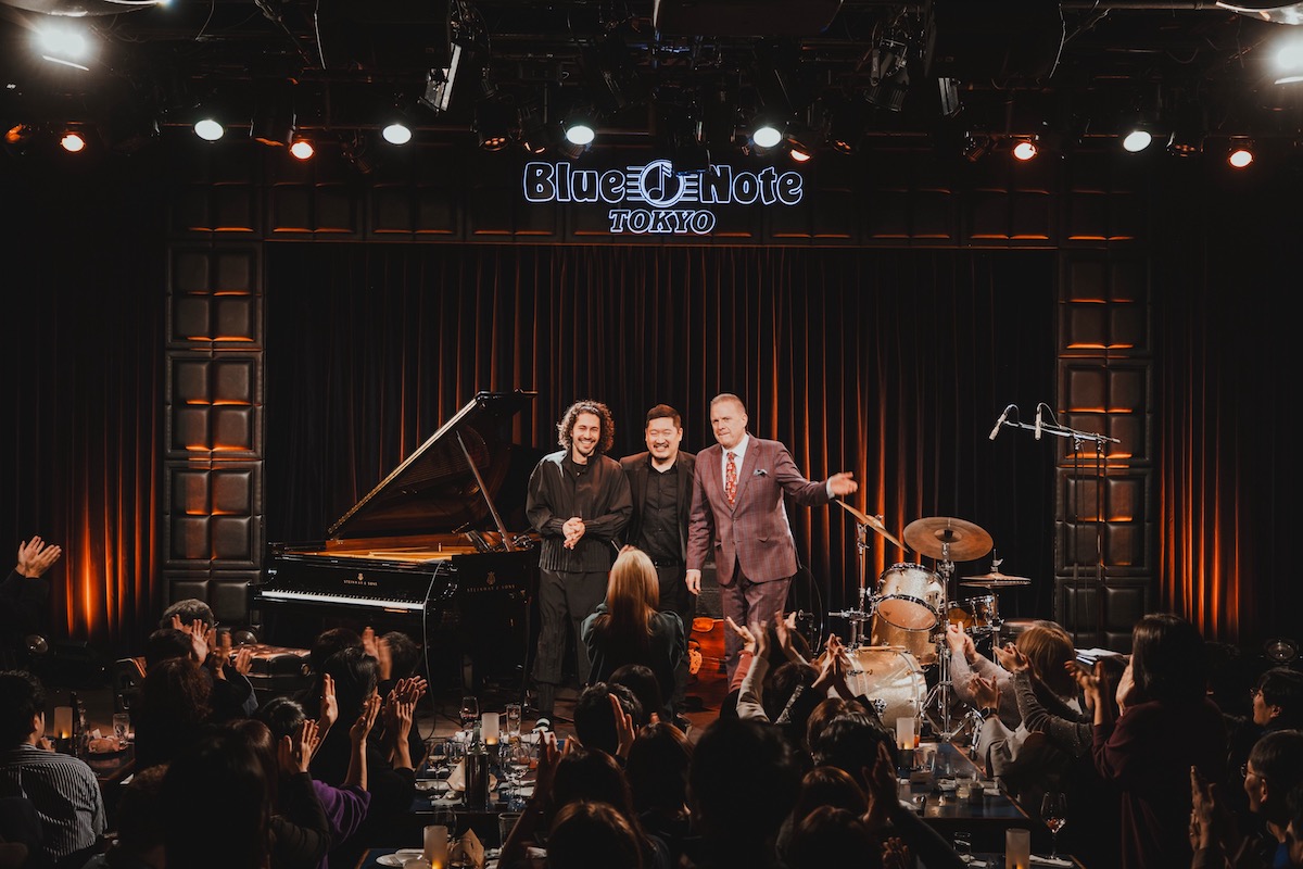 俊英ピアニスト、エメット・コーエンのステージが昨日から始まりました。ブルーノート東京には3年連続の登場ですが、今回はカウントダウン・ライヴを含む8公演が開催されます。10月末まで行われていた人気配信番組「Live from Emmet's Place」での親しみやすいキャラクターはそのままに、至近距離で、いまこの瞬間、ピアノの鍵盤に指を走らせる彼を目撃できるのは実演ならではの快感です。「大好きな場所に戻ってこれて嬉しい」と語りながら、エメットは1曲1曲を大変な集中力でプレイしていきます。