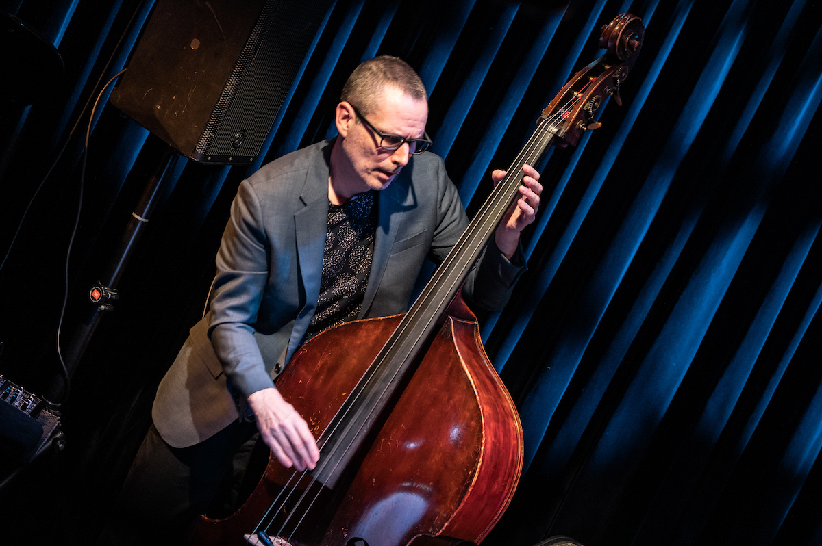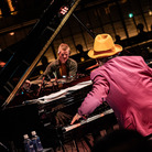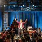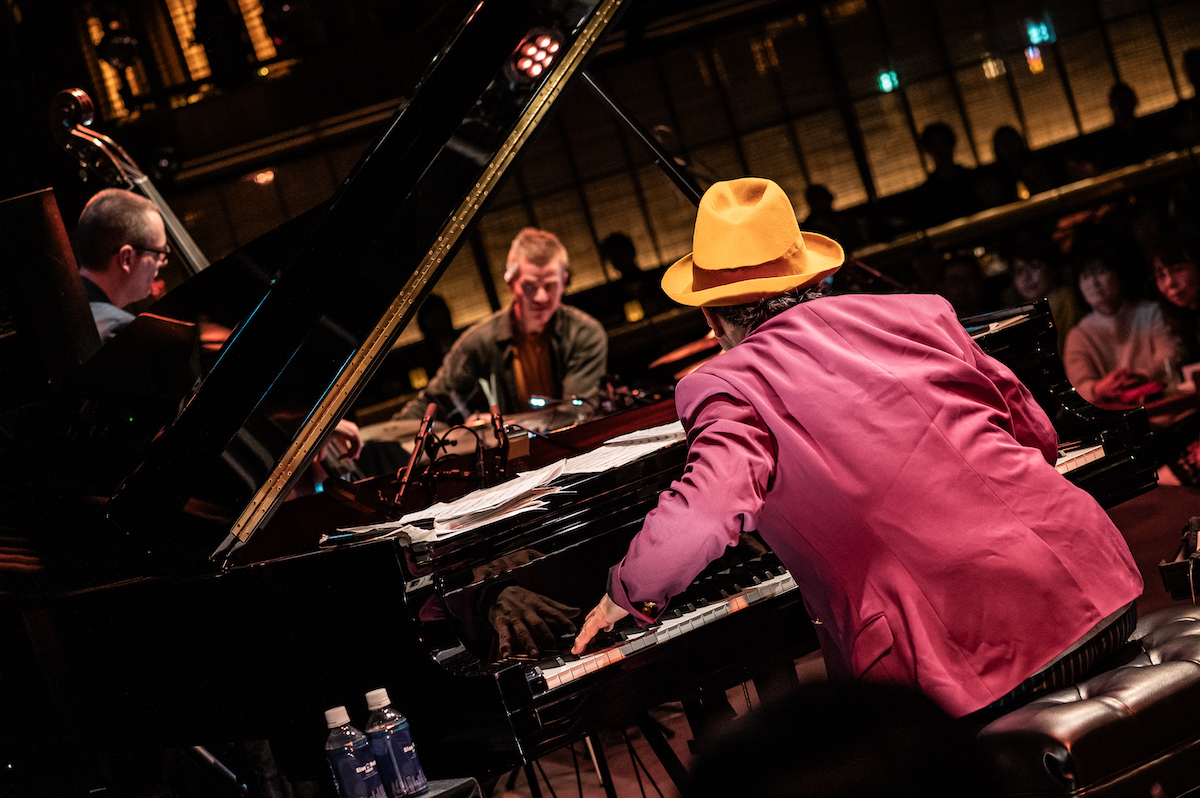 また、ライヴの中盤ではトリオとしての新しいレパートリーも楽しむことができました。1985年発表の7thシングル「Real」、やはり80年代の楽曲で大江いわく、今回"キューティーなテクノアレンジにした"という「Reckless Eyes(向こうみずな瞳)」、さらに先日書き上げたばかりという「Mohawked」です。この「Mohawked」ではベースやドラムのアドリブもフィーチャーされたのですが、マットはオスカー・ペティフォードの「Tricotism」の一節も引用、ロスは左手のスティックをスネア・ドラムの上に立てて、それを右手のスティックで打つという、フィリー・ジョー・ジョーンズを彷彿とさせる技も届けてくれました。大江千里トリオは、夏ごろを目安にニュー・アルバムのリリース予定とのことで、以上3曲をディスクで聴ける日も楽しみです。