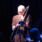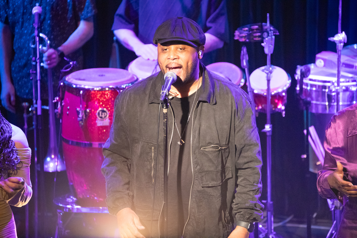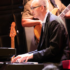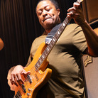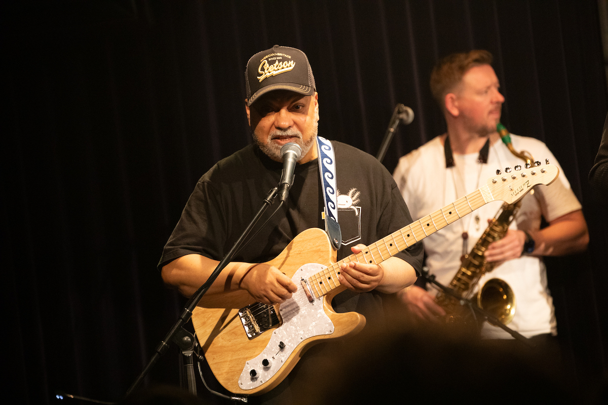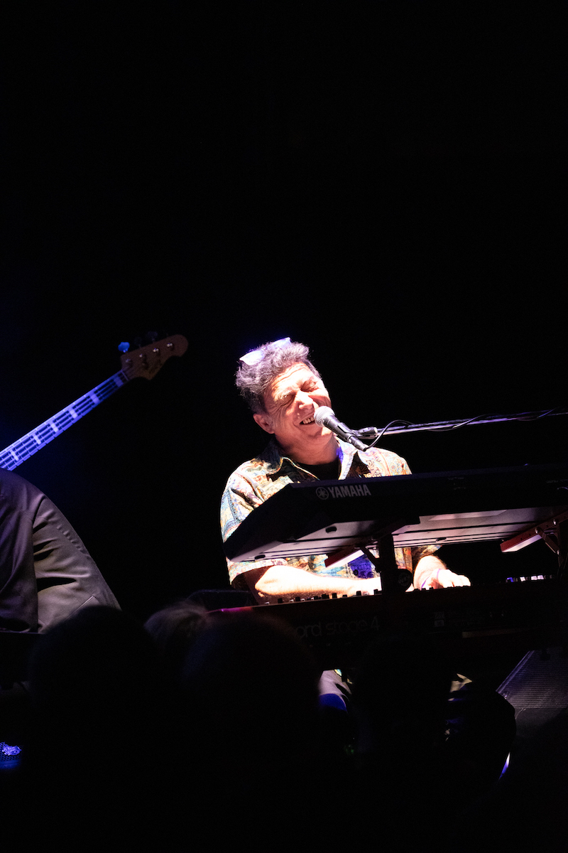 前半では『Music. Magic. Ironic.』の収録曲が次々と、目の前で披露されました。オープニングの「Running Away」は、昨年亡くなったロイ・エアーズが1970年代に発表した代表曲。インコグニートは彼の訃報に接する前にレコーディングを済ませていたとのことです。ロイ自身のヴァージョンも「かっこいい」の一言に尽きますが、インコグニートはこれを4人のヴォーカリストをフィーチャーしたアレンジで届けます。歌い手たちはチェリー・V、クレオ・レイン・スチュワート、トニー・モムレルに、"ポスト・エイミー・ワインハウスの最右翼"と紹介されたこともあるナタリー・ダンカン。ソロで歌ってもハモリを入れてもトップ・クラスの面々が並び、さらに今回は気鋭のキッコ・アロッタと大ベテランのグラハム・ハーヴィーのツイン・キーボードも楽しむことができます。ステージに並ぶのは、総勢14人。これまでの最大規模といっていいアンサンブルが、創設者/ギタリスト/プロデューサーであるブルーイの指令によって炸裂するのです。