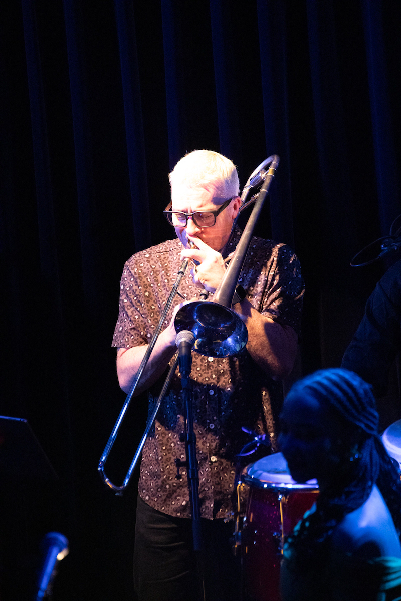 「It's About Time」、「Reasons To Love」、「Can't Be A Fool」と新作からの曲が続き、途中からは、ブルーイがニューヨーク滞在中に作曲したという「One Hundred And Rising」、わずか15分で書いたらしい「Still A Friend Of Mine」など、90年代からの人気レパートリーが続きます。途中ではサックスのポール・ブース、ドラムスのフランチェスコ・メンドリア、パーカッションのジョァン・カエタノの3人だけがステージに残って「Afro Blue」を演奏するパートもありました。そしてここからフルメンバーが再び揃い、階名による歌詞をキコが歌う「1993」、クレオの高音ヴォーカルが冴えわたる「Everyday」、大定番の「Don't You Worry 'Bout A Thing」などを届けてくれました。