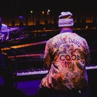 バンドスタンドにはまず、ジャヒ・サンダンスが登場しました。彼のことは、元サックス奏者で現在は詩作や作曲に情熱を傾けている巨星オリヴァー・レイクの愛息としても知られていることでしょう。父親ゆずりの深みのある声でMCも務め、そこから全メンバーが一体となったパフォーマンスへと突入します。このユニットでのグラスパーは、彼が長い期間をかけて自身の一部にしてきたであろう古典的なスタンダード・ナンバーも盛んにプレイするのですが、この日、とくに冴えわたっていたのが「Stella By Starlight」でした。ハンク・ジョーンズ、オスカー・ピーターソン、ビル・エヴァンス、チック・コリア、キース・ジャレットなど数限りない先人たちが取り組んだ楽曲で、グラスパーも2015年リリースのアルバム『Covered』で実に粋なハーモニー感覚を盛り込んだアレンジを伴いながら解釈していましたが、それから十数年、「Stella」のドラマティックなまでの深化・拡大・発展は止まりません。冒頭の無伴奏ソロ・ピアノ・パートは、7~8コーラスは続いたのではないかと思います。抽象的・打楽器的なフレーズの群れから徐々に「Stella」のメロディが浮かび上がってきて、頃合いを見計らってバーニスやダミオンが入り、さらにジャヒがさまざまな出音で刺激を加えていきます。
