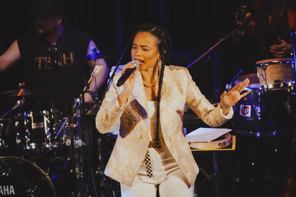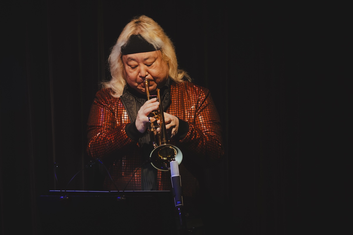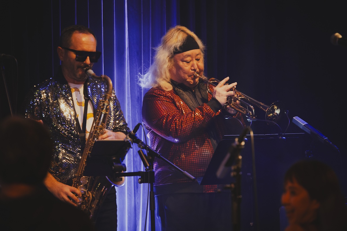 ポスト・パンク・バンド"A Certain Ratio"でも演奏するキーボーディストのマット・スティール、ずっしり重いキック(バスドラ)の音色が印象的なドラマーのルーク・ハリス、逞しいテナー・サックスの音色を届けるリチャード・ビーズリーなど、2010年代からの来日公演にも参加している面々を数多く含むコンビネーションは鉄壁そのもの、急遽参加することになったエリック・ミヤシロも輝かしいトランペットやまろやかなフリューゲルホーンの音色でアンサンブルとソロ双方においてフィーチャーされました。アンジェラはこの日が誕生日、"日本でバースデイを迎えることができて嬉しい"と喜びにあふれています。