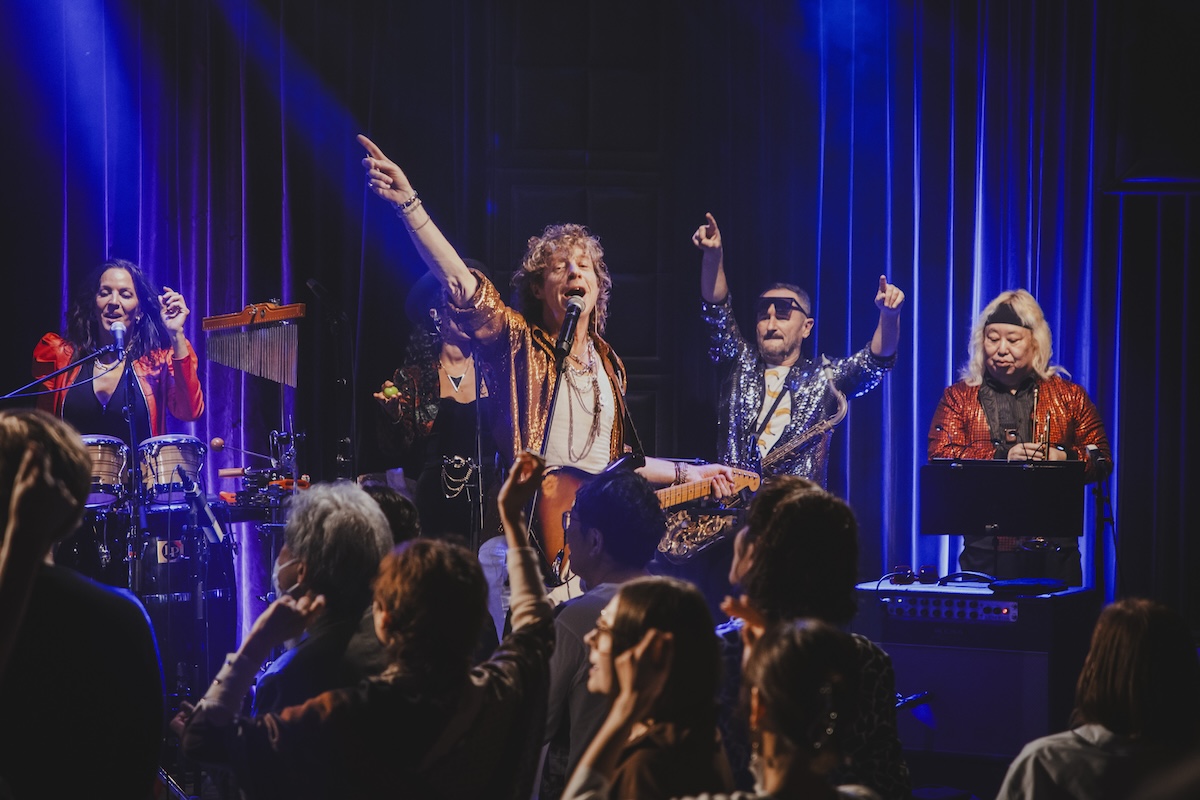 選曲は"これこそザ・ブラン・ニュー・ヘヴィーズ"というべきもので、「Dream Come True」、「Sometimes」、「Brother Sister」、インストゥルメンタル曲「BNH」などが次々と登場。アンジェラの"夢を見ることを忘れないで。おこの曲を夢見る人に捧げます"というようなMCのあと「Dream On Dreamer」が始まり、そこから「Midnight At The Oasis」へと、ほぼノンストップで移ってゆくタイミングもまた、実に見事です。頭上ではミラーボールが輝き、超満員のオーディエンスも各自、思い思いに体を揺らしています。そしてオーラスは、一度聴いたら誰もがリフレインを口ずさんでしまうであろう超キャッチーな「You Are The Universe」。ここではアンジェラ、バック・ヴォーカルのケリ・アーリンデル、パーカッション奏者のミム・グレイがそれぞれリード・ヴォーカルを聴かせてくれました。
