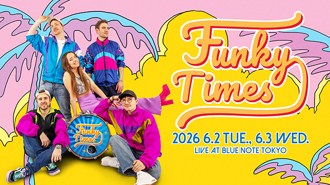 世界を席巻するミニマル・ファンク最前線!ドイツ出身のファンク・バンド、ファンキー・タイムズが初登場する。2020年の結成以来、ポップでキャッチーな演奏動画がTikTokやインスタグラムで話題となり、一躍注目の存在に。ダーティ・ループスのベーシスト、ヘンリック・リンダーや、プリンスのトランペット奏者フィリップ・ラシター、人気サックス奏者サム・グリーンフィールドらトップ・アーティストとのコラボレーションを実現させ、キャンディ・ダルファーは自身のライヴ・シリーズ「Candy's Choice」やラジオ番組で彼らを取り上げるなど、アーティストからの支持も熱い。2024年にリリースしたデビューアルバム『ウィー・キープ・オン・グルーヴィン』も反響を呼ぶ彼ら、卓越した演奏テクニックで繰り出す爆発的ライヴをいち早く体験したい。