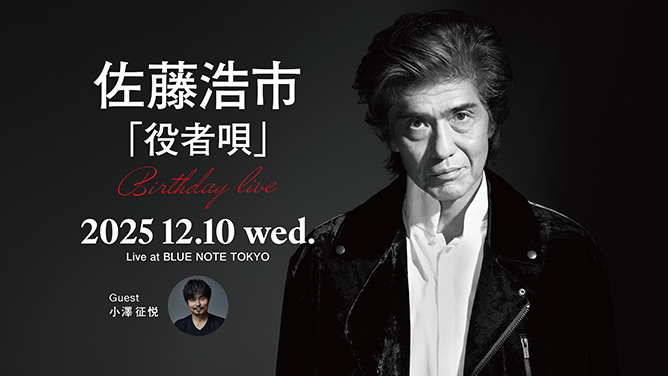 日本映画界を代表する俳優、佐藤浩市が2年ぶりにブルーノート東京のステージへ帰ってくる。先輩俳優の原田芳雄の唄に触れ、原田の勧めで歌い始め、これまでも定期的にライブハウスで歌声を披露してきた佐藤。デビュー40周年にはブルーノート東京での無観客ライヴを収録した初アルバム『役者唄60 ALIVE』をリリースし、翌年には観客を迎えて抜群のパフォーマンスを披露。「役者だから歌える唄を」をテーマに、男臭さや不器用なかっこよさ、刹那的な弱さなど、さまざまなイメージを演じるように歌い、その豊かな表現力が話題を呼んでいる。今回は65歳を迎える誕生日当日のバースデー・ライヴ。真摯に“うた”と向き合い続ける佐藤が届ける一夜限りの「役者唄」、その世界に酔いしれたい。