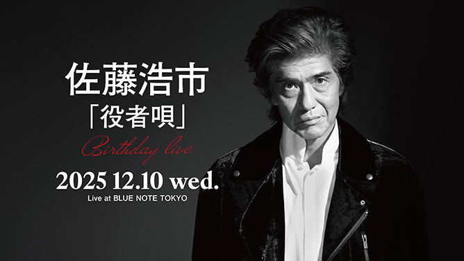日本映画界を代表する俳優、佐藤浩市が2年ぶりにブルーノート東京のステージへ帰ってくる。先輩俳優の原田芳雄の唄に触れ、原田の勧めで歌い始め、これまでも定期的にライブハウスで歌声を披露してきた佐藤。デビュー40周年にはブルーノート東京での無観客ライヴを収録した初アルバム『役者唄60 ALIVE』をリリースし、翌年には観客を迎えて抜群のパフォーマンスを披露。「役者だから歌える唄を」をテーマに、男臭さや不器用なかっこよさ、刹那的な弱さなど、さまざまなイメージを演じるように歌い、その豊かな表現力が話題を呼んでいる。今回は65歳を迎える誕生日当日のバースデー・ライヴ。真摯に“うた”と向き合い続ける佐藤が届ける一夜限りの「役者唄」、その世界に酔いしれたい。