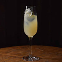 ライチとグレープフルーツの爽やかな味わいにバタースコッチとアーモンドでコクを出し、シャンパンで仕上げたセレブレーションカクテル。