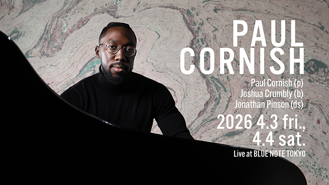 名門ブルーノートからデビュー・アルバム『You’re Exaggerating!』をリリース!要注目のピアニスト、ポール・コーニッシュがついにリーダー・プロジェクトでブルーノート東京のステージを飾る。テキサス・ヒューストン出身。ロバート・グラスパーやジェイソン・モランら多数の才人を輩出したキンダー・パフォーミング・アーツ・ハイスクールに学び、現在はLAを拠点に活動。2023年のハービー・ハンコック・インターナショナル・ジャズ・ピアノ・コンペティションで3位を獲得し、ジョシュア・レッドマンやマーク・ジュリアナ、カニエ・ウェストといった数々のトップ・アーティストと共演するなど躍進を続けている。本公演にはジョシュア・クランブリー(ベース)、ジョナサン・ピンソン(ドラムス)のトリオで登場。ジャズの伝統を継承する新星ピアニストに期待が高まる。