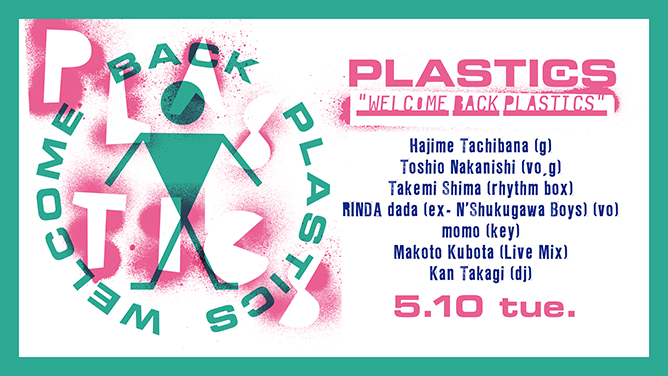 テクノ・ポップ黎明期の日本に忽然と登場したユニット、プラスチックスが40周年を機に再結成ライヴを行なう。1976年結成、'79年にラフトレードから「COPY/ROBOT」を発表。翌'80年1月に日本デビュー。3rdアルバム『WELCOME BACK』の全世界発売と前後して欧米ツアーを敢行、ラモーンズやトーキング・ヘッズ等との共演を経て''81年12月に解散した。この4月に初の書籍『情報過多〜Too Much Info』、およびN.Y.ライヴのヴァイナル『We Love You Oh No! PLASTICS Live in Central Park NYC 1981』をリリース。今なお多くのフォロワーを生むプラスチックスの“現在”をライヴで目撃したい。