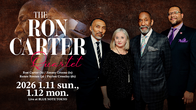 至高のプレイと格調高いサウンドで、ジャズ・ベースを象徴する巨匠ロン・カーターが待望のカルテットでブルーノート東京に帰ってくる。1963年にマイルス・デイヴィスのバンドに加入し、数多くの名盤に貢献。その後もジム・ホールやハービー・ハンコックのバンド、自身のグループ等で多彩な活動を展開。“最多レコーディング数を誇るジャズ・ベーシスト”としてギネス世界記録を保持し、2021年には日米親善に寄与したとして旭日小綬章を受章するなど、国境を越えて敬愛されている。カルテットのメンバーには、これまでもツアーやレコーディングで共演を重ねてきたリニー・ロスネス(ピアノ)、ジミー・グリーン(サックス)、ペイトン・クロスリー(ドラムス)の名手たちが参加。レジェンドたちを至近距離で体感する極上の夜となる。