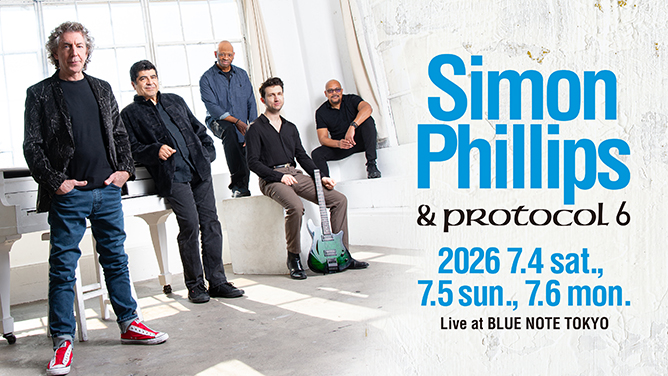 50年以上にわたりミュージック・シーンの最前線に位置するレジェンダリー・ドラマー、サイモン・フィリップスがソロ・プロジェクト“プロトコル”を率いてブルーノート東京に帰ってくる。英ロンドンに生まれ、3歳からドラム演奏を開始。ジェフ・ベック、アル・ディ・メオラ、TOTOといった錚々たるトップ・アーティストと共演し、上原ひろみ ザ・トリオ・プロジェクトでの活躍も記憶に新しい。今回はリリースが待たれるニューアルバム『Protocol 6』の参加メンバーであるオトマロ・ルイーズ(キーボード)、アーネスト・ティブス(ベース)、アレックス・シル(ギター)、フィリップ・ワック(サックス)と登場。超絶技巧が光る白熱のセッション、圧巻のスケールで描く最新作の世界を体験したい。