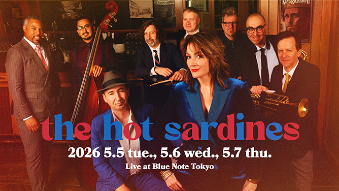 スタイリッシュなルックスとレトロ・フューチャーな音作りが話題!NY発の人気グループ、ザ・ホット・サーディンズがゴールデンウィークのブルーノート東京を洒脱に彩る。2007年にピアニストのエヴァン・パラッツォと紅一点シンガー、エリザベス・ブージュロルが出会い結成。ファッツ・ウォーラーやジャンゴ・ラインハルトの魂を受け継ぎ、1920~40年代の古き良きジャズを現代にアップデートするサウンドで幅広い世代を魅了。ジャズ・スタンダードとオリジナル曲で構成した目下の最新作『C’est la Vie』もロングセラーを続けている。今回はこどもの日に人気イベント「JAZZ for CHILDREN」も開催。ミュージカルのようなハッピーなステージング、世界中のメディアがこぞって絶賛するゴージャスでエレガントな魅力を全方位で楽しみたい。