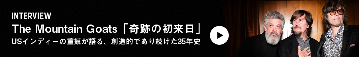米ローリング・ストーン誌に“2000年代のアメリカが誇る最も優れた作詞家の一人”と評されたシンガー・ソングライター、ジョン・ダーニエル率いるインディ・フォークロック・バンド、ザ・マウンテン・ゴーツが待望の初来日を果たす。1991年にダーニエルを中心に活動を開始し、1994年に初のスタジオ・アルバム『ZOPILOTE MACHINE』をリリース。30年以上にわたり活動を続け、物語性豊かな歌詞と文学的な抒情性で熱狂的な支持を獲得している。現在のメンバーはスーパーチャンクでも活躍するジョン・ウースターとアルバム・プロデュースも手がけたマット・ダグラスの3人組。最新作『Through This Fire Across From Peter Balkan』は、ミュージカル劇の要素を取り入れた構成で最高傑作との呼び声も高く、キャリアを重ねた現在も進化する姿を提示した。USインディ界の重鎮バンドに会える日が待ち遠しい。